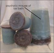 I melted down a big pillar that I had and made some recycled candles. They're nothing I'd sell at my store, but they were fun. I'll probably throw them in as fuglies, or give some away. The first one I used an ice bath on for ??? reason. The middle ones were from pill bottles (got the idea from a fellow chandler), and the bottom were just votive molds. |