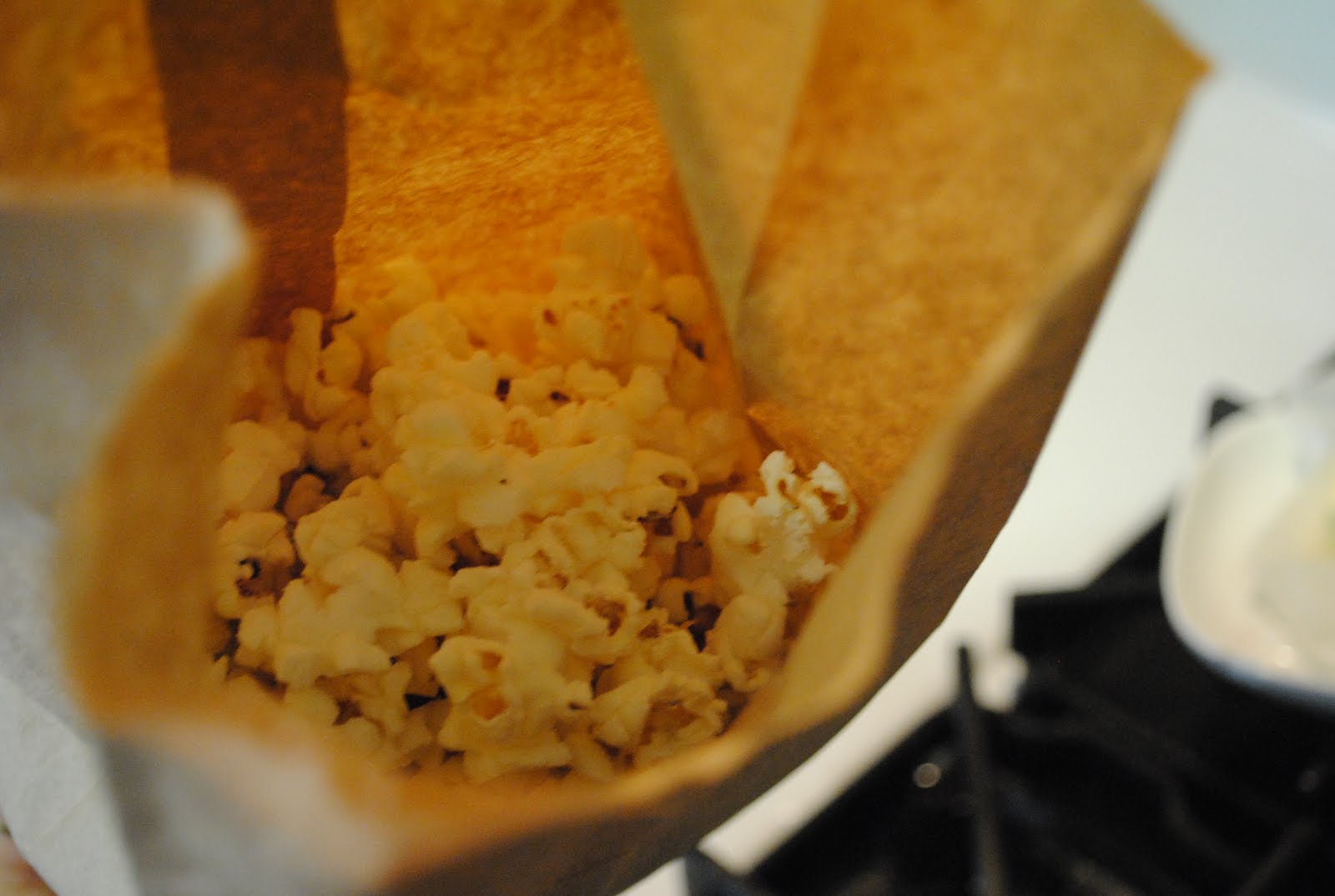 Which leads me to the whole reason for this post, which is to share the semi-newfound love of microwaved popcorn in a brown bag. As I snapped my pictures, I couldn’t for the life of me remember where this idea came from, but I certainly didn’t pull it out of my own imagination. On a whim I checked my history and found it: squawkfox. I think that’s it. There might be other sources, but that’s what popped up for me. Get it? Popped up?